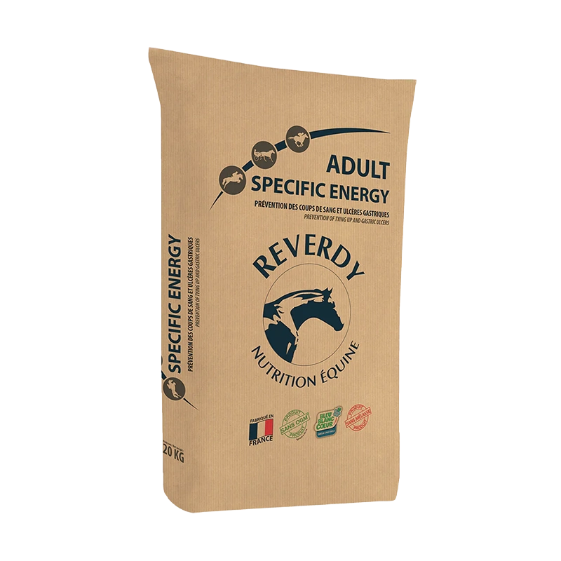 Reverdy Specific Energy, Pelletiertes Futter für erwachsene Pferde, die anfällig für Kreuzverschlag und Magengeschwüre sind.
