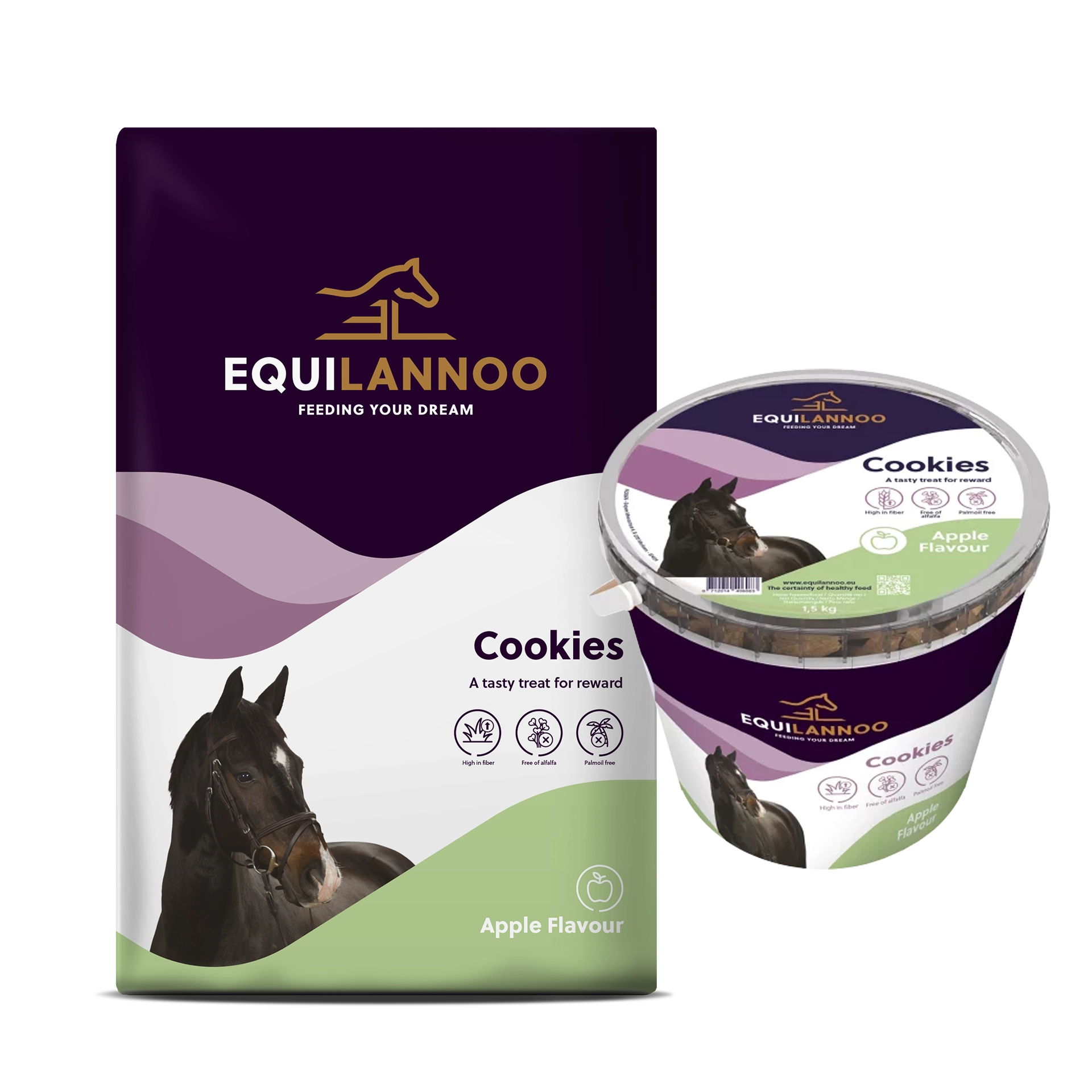 Ein leckerer Leckerbissen zur Belohnung mit Apfelgeschmack. Verwöhnen Sie Ihr Pferd oder Pony mit Equilannoo Cookies! Diese gesunden, schmackhaften und leicht verdaulichen Leckerlis sind die ultimative Belohnung.