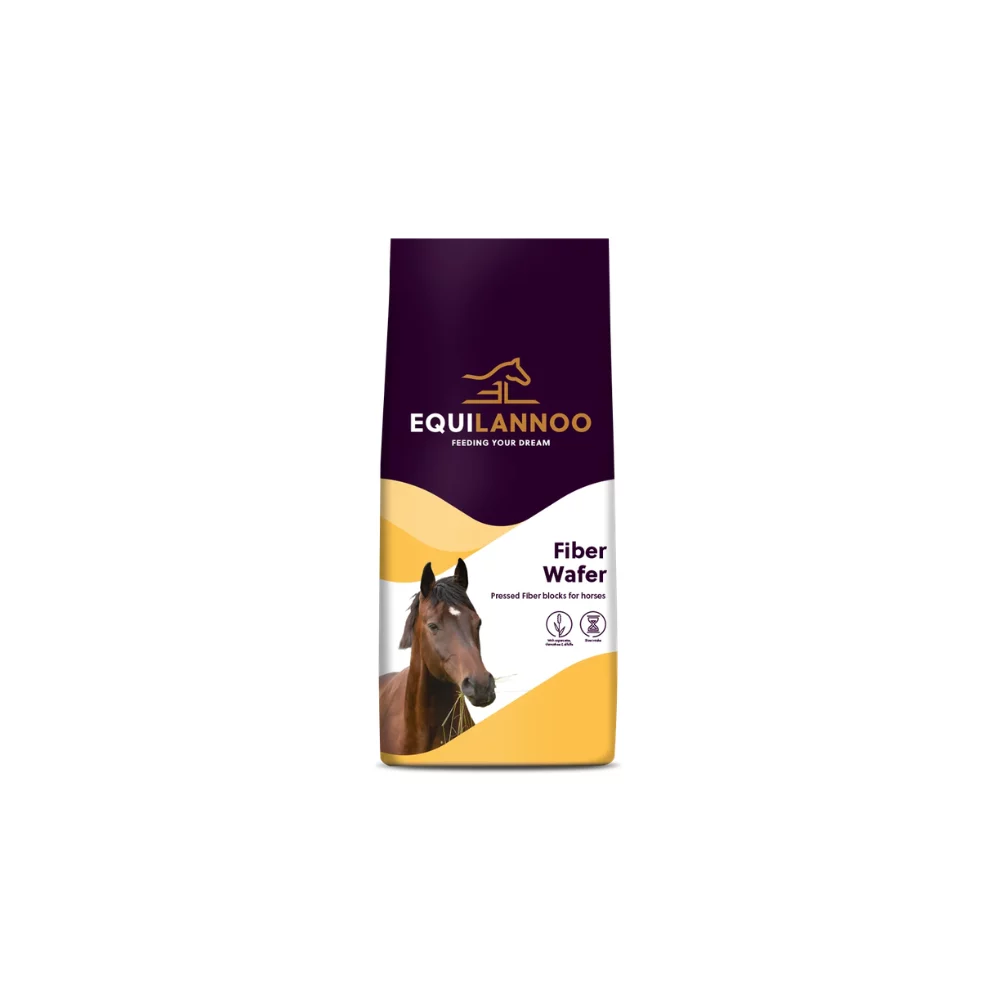 Equilannoo Fiber Wafer ist ein ballaststoffreiches, strukturiertes Pellet, das sich perfekt mit Kraftfutter und Ergänzungsfuttermitteln mischen lässt oder als vollständiger oder teilweiser Ersatz für Raufutter verwendet werden kann. Diese naturbelassenen Brocken enthalten Alfalfa, Esparsette und Lieschgras, ohne Melasse oder Zuckerzusatz. Dank der Zugabe von Karottenflocken und Apfeltrester ist das Futter auch für Pferde besonders schmackhaft.