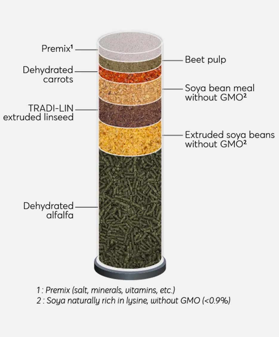 Dieses Futter dient als hochwertiger Ausgleich zum Heu und deckt den täglichen Bedarf an essentiellen Nährstoffen.