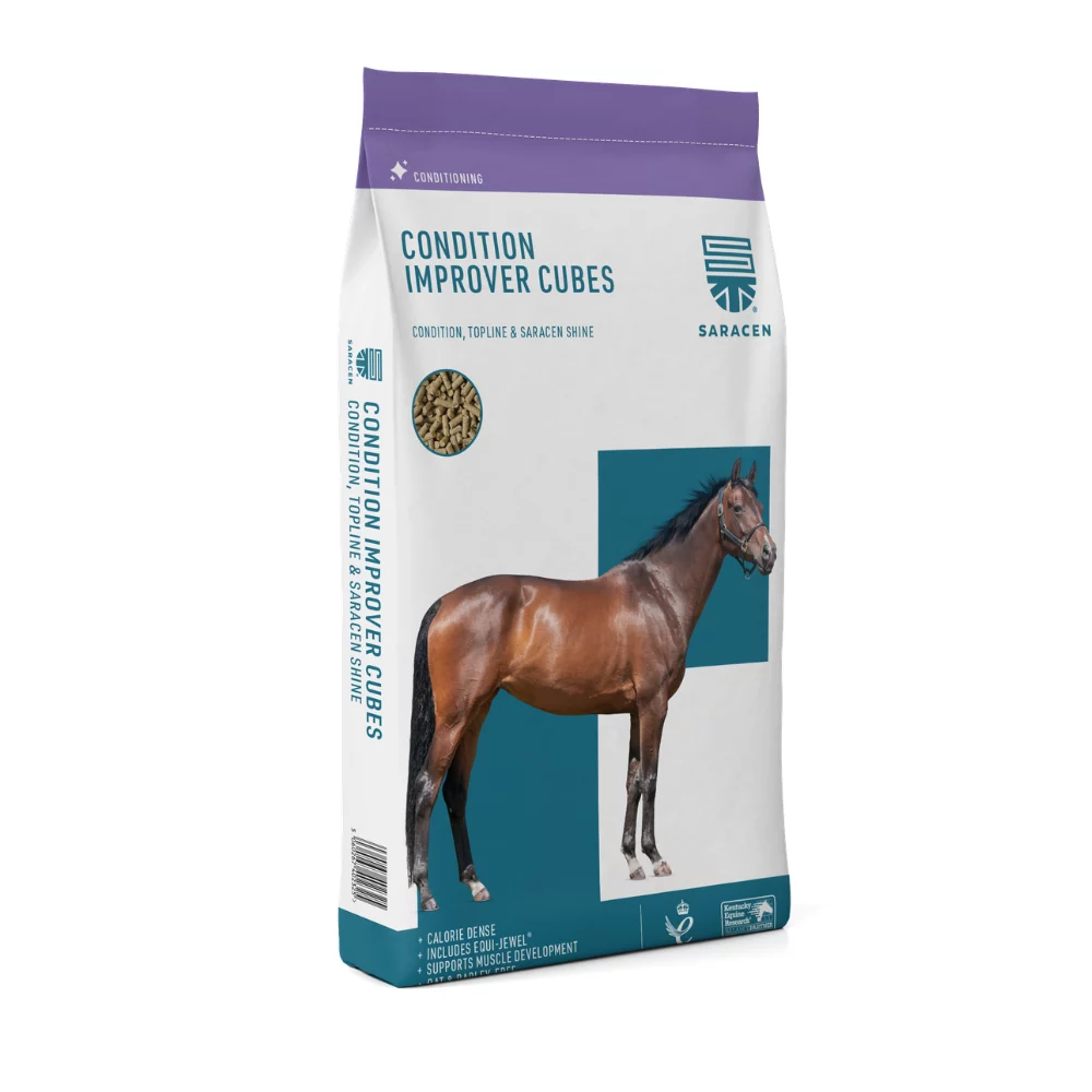 Diese Condition-Improver-Cubes sind im Grunde die pelletierte Form des Mixes mit ähnlicher Wirkung: energie- und nährstoffreich, zum Konditionsaufbau, Muskelaufbau und Unterstützung eines ruhigen Charakters bei Pferden in Arbeit oder schwerfuttrigen Tieren.